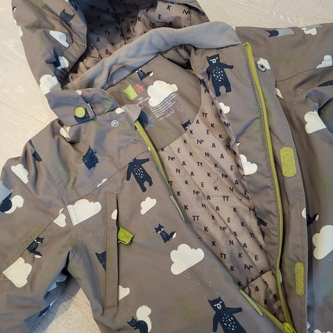 Kattnakken barneklær helårsregndress i størrelse 110. Dressen er grønn. Godt brukt og har tatt på aquasure lim for å tette noen steder. Mangler fotstrikker. Ikke vasket for å unngå mer slitasje.