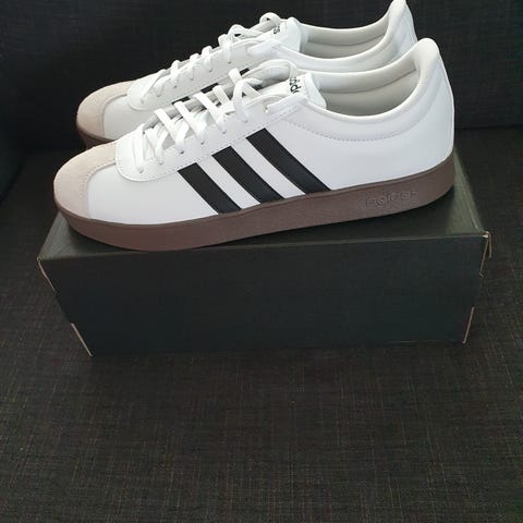 Adidas Sneakers joggesko i størrelse 45 1/3. Skoene er røde og har klassisk design med tre striper på siden. Egnet for daglig bruk og fritidsaktiviteter.