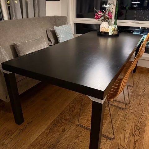 Gir bort er spisebord som har blitt brukt som ekstra bord ved behov. Synlig brukt men fungerer fint. Litt usikker på dimensjonene, men tipper rundt 160 langt og 60 -70 cm bredt