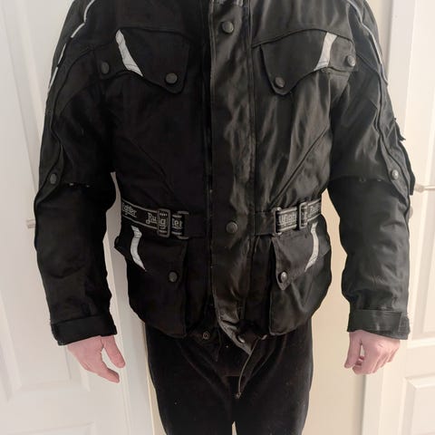 En motorsykkel jakke som jeg kjøpte på Finn men jeg har aldri brukt den så den er i god stand