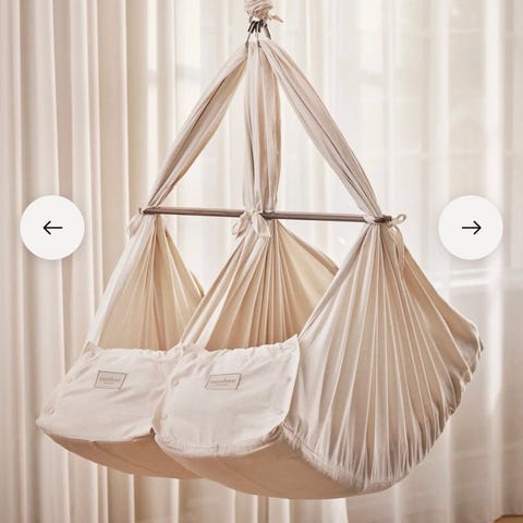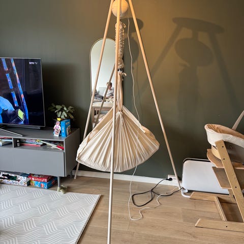 Vi selger vår Moonboon babyhammock, som virkelig har vært en redning i de første månedene.