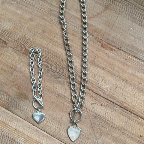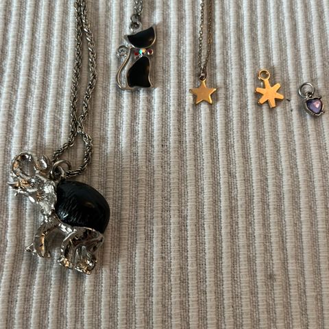 H&M dame smykker i gullbelagt materiale med ulike design og detaljer. Inneholder flere smykker som halskjeder og øredobber, laget av gullbelagt materiale kombinert med andre materialer.per stk 30 kr kan sendes