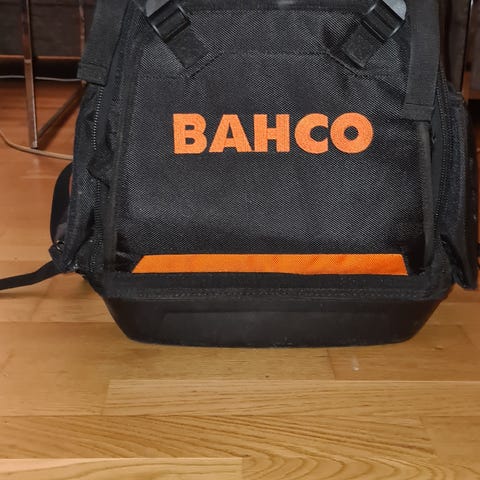 Slitesterkt sagrom dekket av ballistisk nylon. Slitesterkt stålhåndtak. Innvendige elastiske verktøyløkker for maksimal organisering. Stor sidelomme for kabel. Flere verktøyrom for alle oppbevaringsbehov med lett tilgjengelige lommer. Sklisikre gummibånd med borrelås inkludert for oppbevaring av store gjenstander.