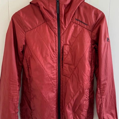 Peak Performance annet yttertøy i størrelse M for kvinner. Det er en skijakke til bruk i slalombakken eller på langrennsturer. Jakken er mørkerød. Den er laget av polyester. Egnet for utendørs bruk med funksjonelle detaljer som hette og glidelås.