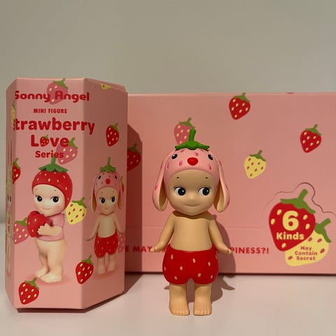 Sonny Angel Strawberry Love Series jordbær med hjerte. Kjøpt på Sonny sin hjemmeside. Selger siden det var ikke den jeg ville ha.
