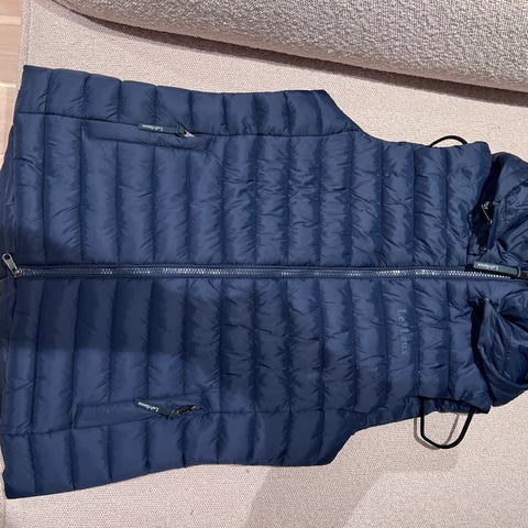 Ralph Lauren vattert vest i blå farge. Vesten har quiltet mønster og glidelås med trykknapper. Innside med blomsterprint. Passer til bruk som ytterplagg i mildt vær, eller hesteridning.