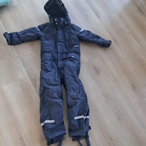 Veldig god dress fra Didrikson i str 130. Er litt stor i str så passer fint 134-140. Disse dressene har en oppside kan som gjør at du kan forlenge de noe i bena får st de skal vare lenger. Denne er tatt ned for å forlenge på denne dressen. Godt brukt, men i god stand, spesielt strikk under bena er godt beholdt. Har et lappet hull på ene låret, se bilde. Ellers vanlige bruksmerker, hette fin og hel. Denne er nesten ubrukt.