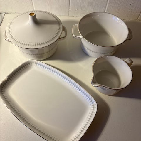 Vakkert servise, Gemma, designet av Gertrud Vasegaard i 1960 for Royal Copenhagen. Settet har et søstersett, Gemina, og settene kan brukes sammen. Gemma kjennetegnes av et mønster i relieff på de enkelte delene.