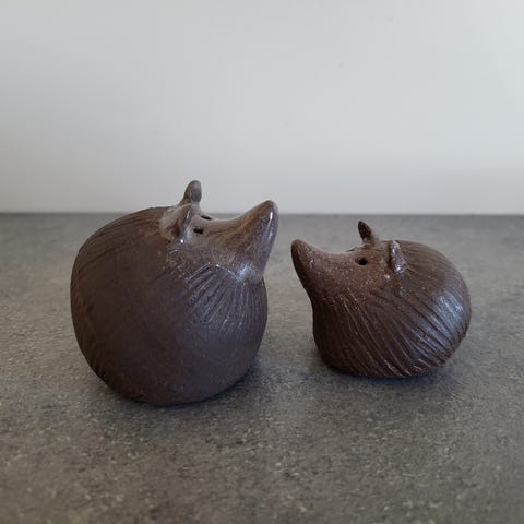 Selger en dekorativ keramikkfigur kjøpt i Rio de Janeiro i Brasil.