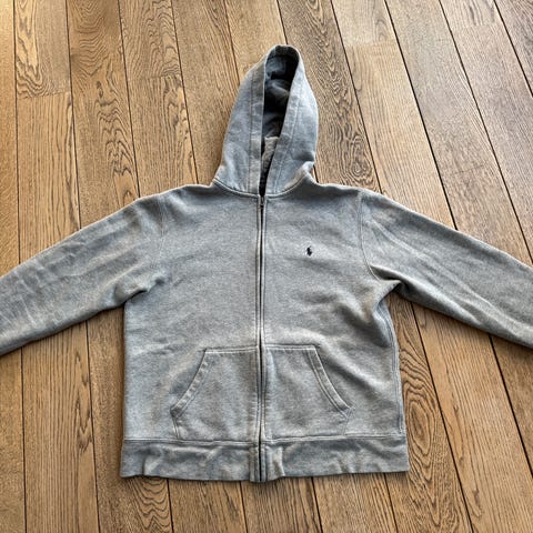 Klassisk, original RL grå hettejakke i 100% bomull, kjøpt ny i 2025 og pent brukt av ett barn (og kun til pent!) Ingen skader/ merker/ hull.