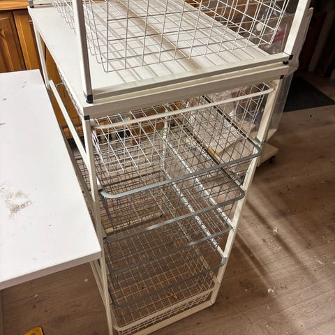 Må hentes i vågsbygd. Glasset kan tas ut og da blir hyllen relativt lett, men den må bæres ned fra 3.etg uten heis. Kan ikke demonteres.