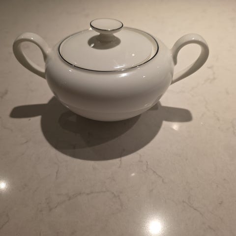 Ubrukt fløtemugge selges for 400,-. (Nypris er ca 700,-).