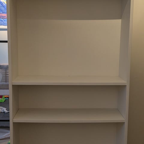 Selger en hvit bokhylle, i god stand. Ikke demontert.