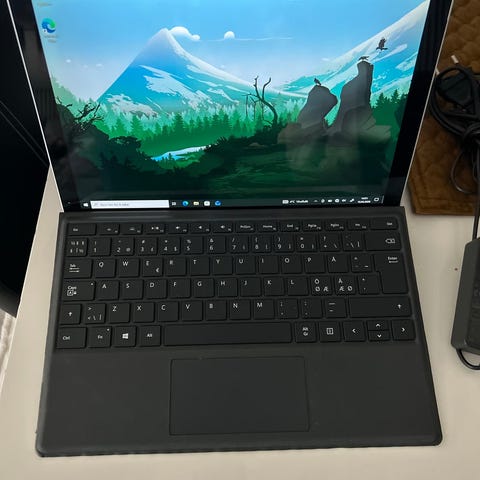 Selger en pent brukt Microsoft Surface Pro 7, komplett og fullt fungerende. Perfekt som lett jobb-PC, studier, reise eller nettbrett-bruk.