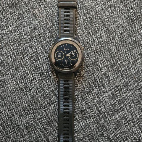 Garmin Forerunner 945 selges. Reimen må byttes ut, en reim koster veldig lite, kan eventuelt sende med en oransje reim det ønskes. Den har et par riper i skjermen, men det vises nesten ikke.