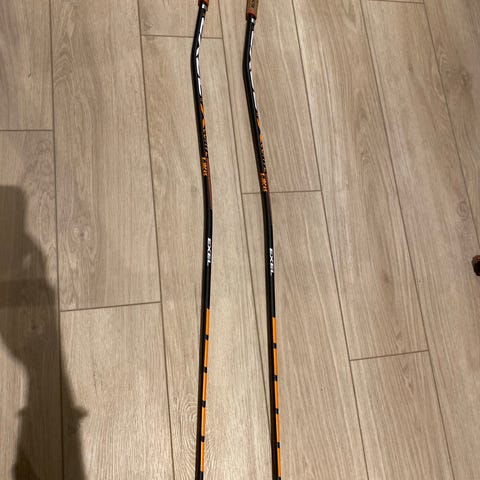 Skistaver Exel x curve fullcarbon på 135 cm. Stavene har oransje og svart farge.