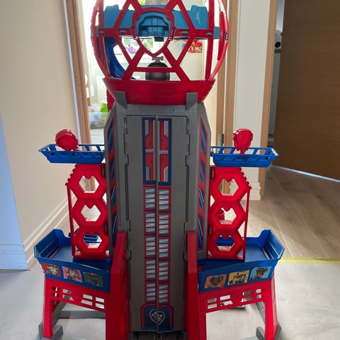 Paw patrol tårn selges. Med lys og lyd. «Kommandosenteret» er defekt, da det har knekt en bit inni som gjør at den ikke lyser, samt at bilde av de ulike valpene ikke endrer seg ved rotasjon.
