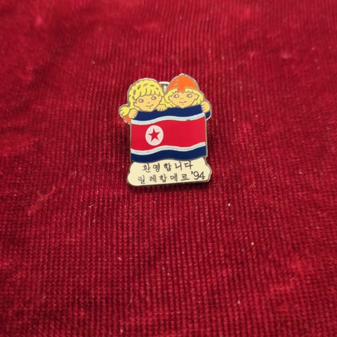 Pins med flagg fra Jugoslavia og Sovjetunionen, knyttet til Lillehammer 1994. Pinsene viser karakterer med flagg i farger som representerer de to landene, og har tekst på norsk og andre språk. Passer for samlere eller som historisk suvenir fra vinter-OL i 1994.