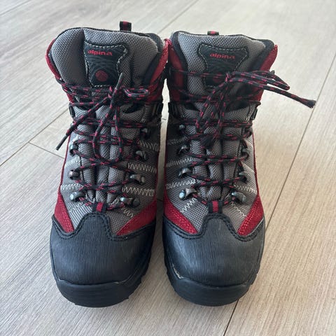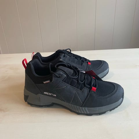 Alpina tur-/vinterstøvler i størrelse 44. Støvlene er svarte og laget med materialer som egner seg for utendørs bruk og turaktiviteter.