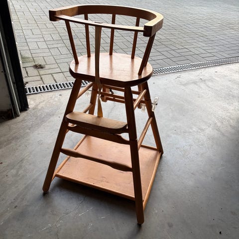 Nydelig vugge med utskjæringer selges. Har hatt den lagret, er demontert og godt innpakket, se bilde. Må monteres av kjøper.