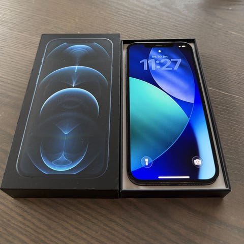 Apple iPhone 12 Pro Max mobiltelefon. Telefonen er i god stand. Ingen riper i skjerm eller bakside. Alltid hatt skjermbeskytter og deksel. Noe bruks slitasje rundt kamera pga tatt opp og ned av lommen.