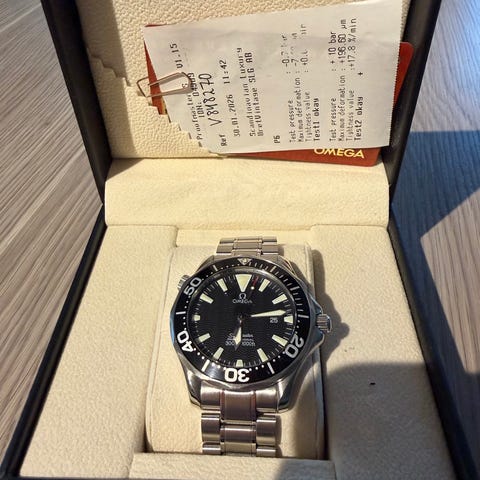 Klokken går nøyaktig, ble renset av forhandler før overtakelse, og trykktestet i oktober 2024, hvor alt var i orden. Den ble anskaffet av forrige i september 2024 gjennom byttehandel med norsk forhandler.