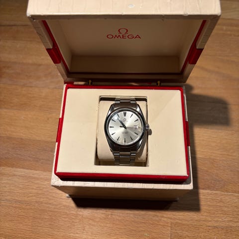 Selger en Omega Seamaster Aqua Terra fra 2008. En tidløs og solid modell som passer like godt til hverdagsbruk som til penere anledninger.
