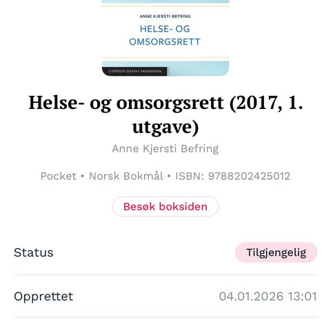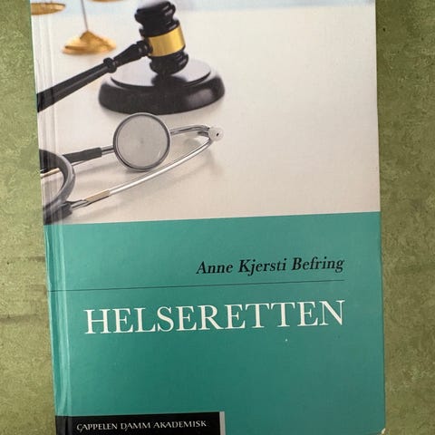 Boken dekker juridiske temaer knyttet til helsevesenet og rettslige problemstillinger.