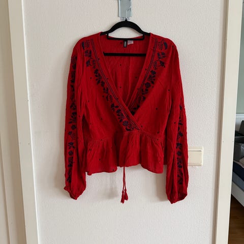 Fin korallfarge bluse i str. 42 selges