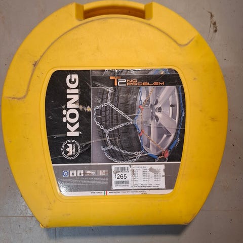 Aldri brukt. Passer nok best for veteranbiler/ eldre biler med 13 og 14 toms dekkdimensjon. Kan også passe smale 15 toms. Se bilde for liste.