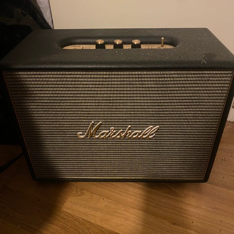 Marshall høyttaler selges billig pga mindre fornøyde naboer! Dette er en bærbar høyttaler med Bt med et tidløst design,samt en helt vanvittig lyd! Blir for kraftig for mine naboer da jeg har fått klager på den. Eneste feilen med den er et lite hull i fronten men fungerer fortsatt som ny! Nypris på denne er 4500,- selges derfor for 2000,- ell bud!