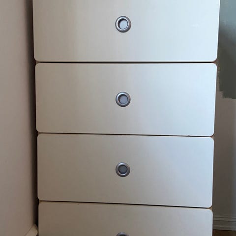 Kommode fra Jysk, har små skader men fungerer som den skal, må hentes på Midsund