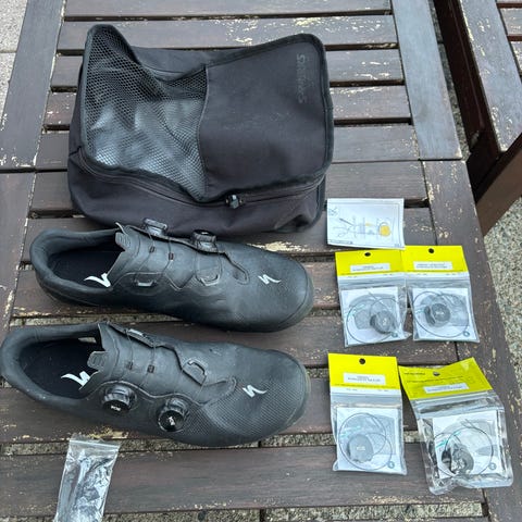 Specialized S-Works Recon 2.0 sykkelsko i svart farge, størrelse 41,5. Skoene har et perforert design for ventilasjon og en justerbar snøring for tilpasset passform.