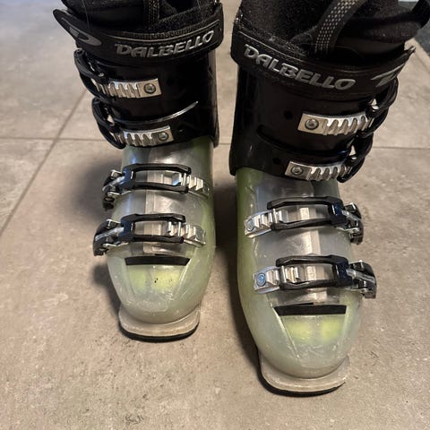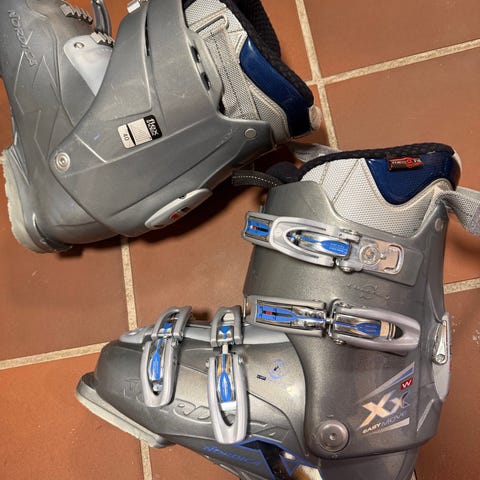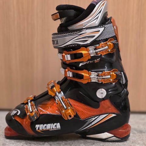 Tecno pro ST 290 alpinstøvler med fire spenner hvor den nederste på hver støvel er knekt. 318mm såle på skoene