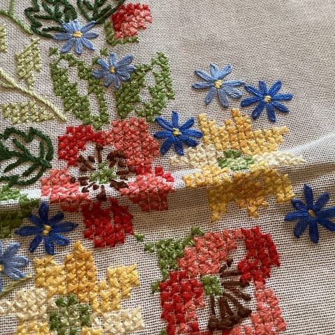 Måler 110 x 107 cm. Ingen skade el flekker. Ikke falmet. Røykfritt hjem. Brodert i korssting. Nydelig kant rundt. Sender mot porto kr 69 postnord som er sporet el hentes på Åkra. Har vipps. Ps. Se gjerne mine andre duker og ting på profilen min. Samme porto pris opptil 5 kg.