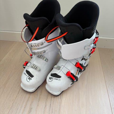 Rossignol alpinstøvler i størrelse 245 mm. Støvlene er hvite med rosa detaljer og har tre spenner for god tilpasning. Designet for alpint bruk.