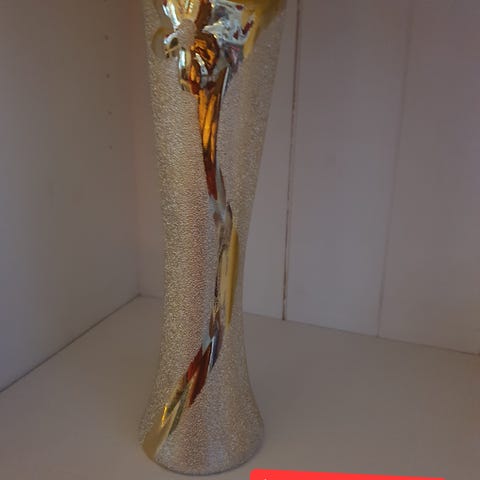 Vase i kremfarget m gulldetaljer selges.kun stått til pynt. Sendes mot porto.