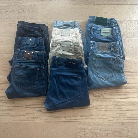 Selger en fin tramarossa bukse med avtagbar patch.