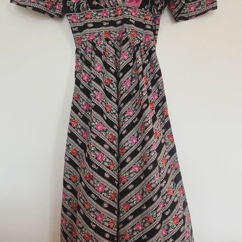 Dette er en helt unik vintage maxikjole fra det britiske merket "Clothes by Samuel Sherman". Dette er en ekte perle fra 1970-tallet!