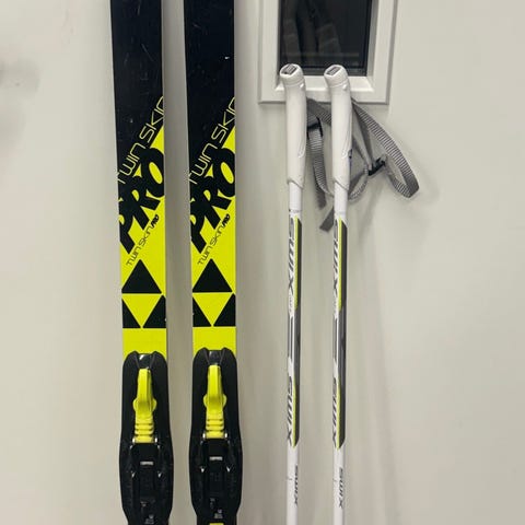 Skiene er brukt av er barn og har overfladiske bruksmerker.