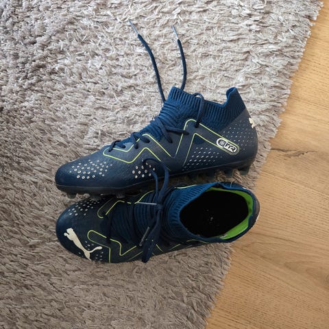 Adidas eller puma (se bildet du vet dette sikkert bedre enn meg?) fotballsko i størrelse 31. Skoene er designet for fotball og har knotter under sålen for godt grep på gress. Brukt ganske kort, og vasket før salg.