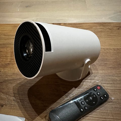 Selger en kompakt smartprojektor (HY320MINI/RUKIPLAY). Fin til enkel hjemmekino på vegg/lerret, gaming eller barnerom – og veldig lett å flytte rundt.