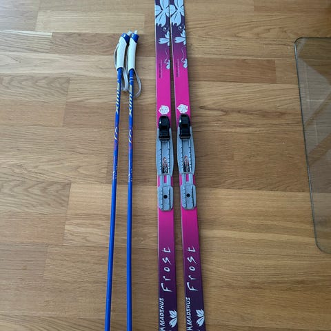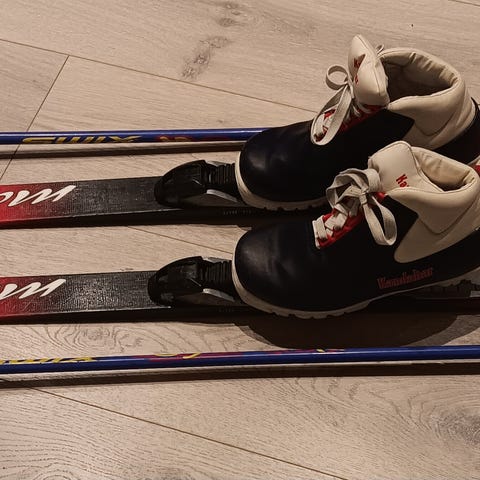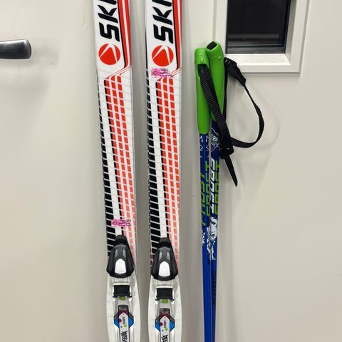 Langrennskipakke m/staver til barn, smøreski, 110 cm