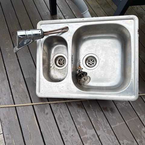 Dobbel kjøkkenvask (kun) inkludert blandebatteri selges