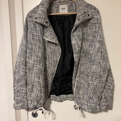 Lang jakke til salgs. Jakken er lite brukt, men har en flekk på den ene armen (se bilde).