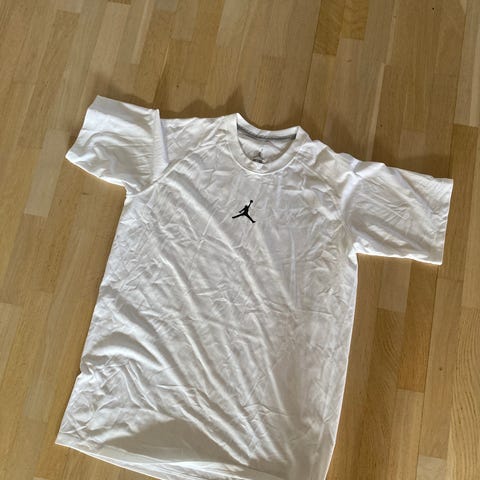 Nike Jordan T-skjorte i størrelse S, hvit farge, laget av bomull. T-skjorten har kort erme og er designet for menn.