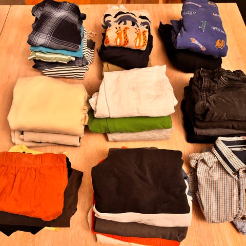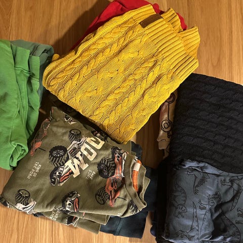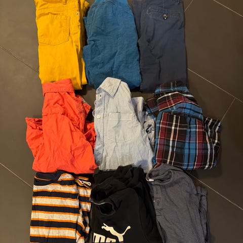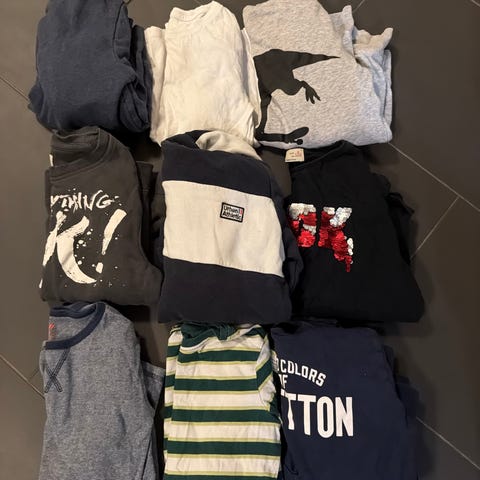 Klespakke i str 122-128 bestående av 4 bukser og 6 gensere.