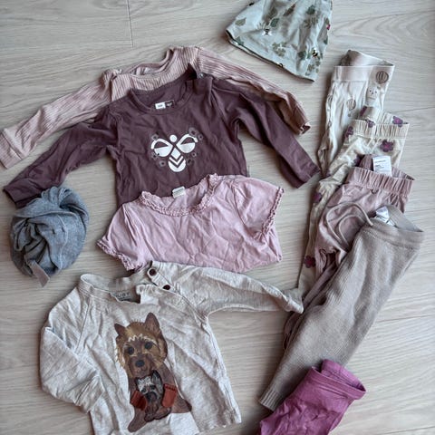Overall, heldress, votter, sokker, ull, hust and claire, ulldress, dress.