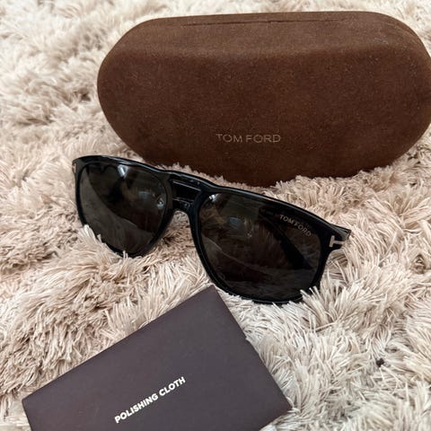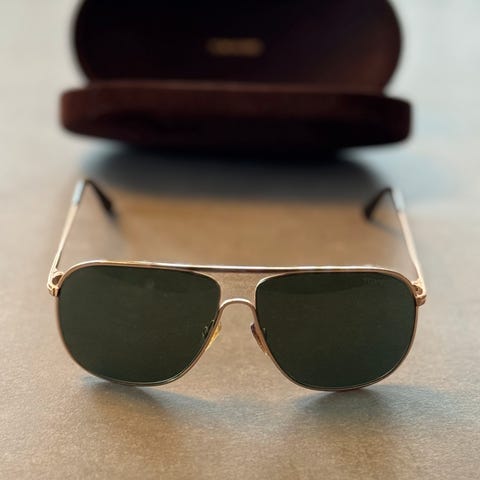 Tom Ford herre solbriller med brun innfatning og grønne glass. Solbrillene har et klassisk design og leveres med etui.