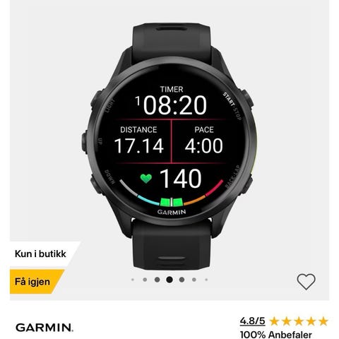 Garmin Forerunner 970. Klokken har pulsmåler og GPS-funksjon.